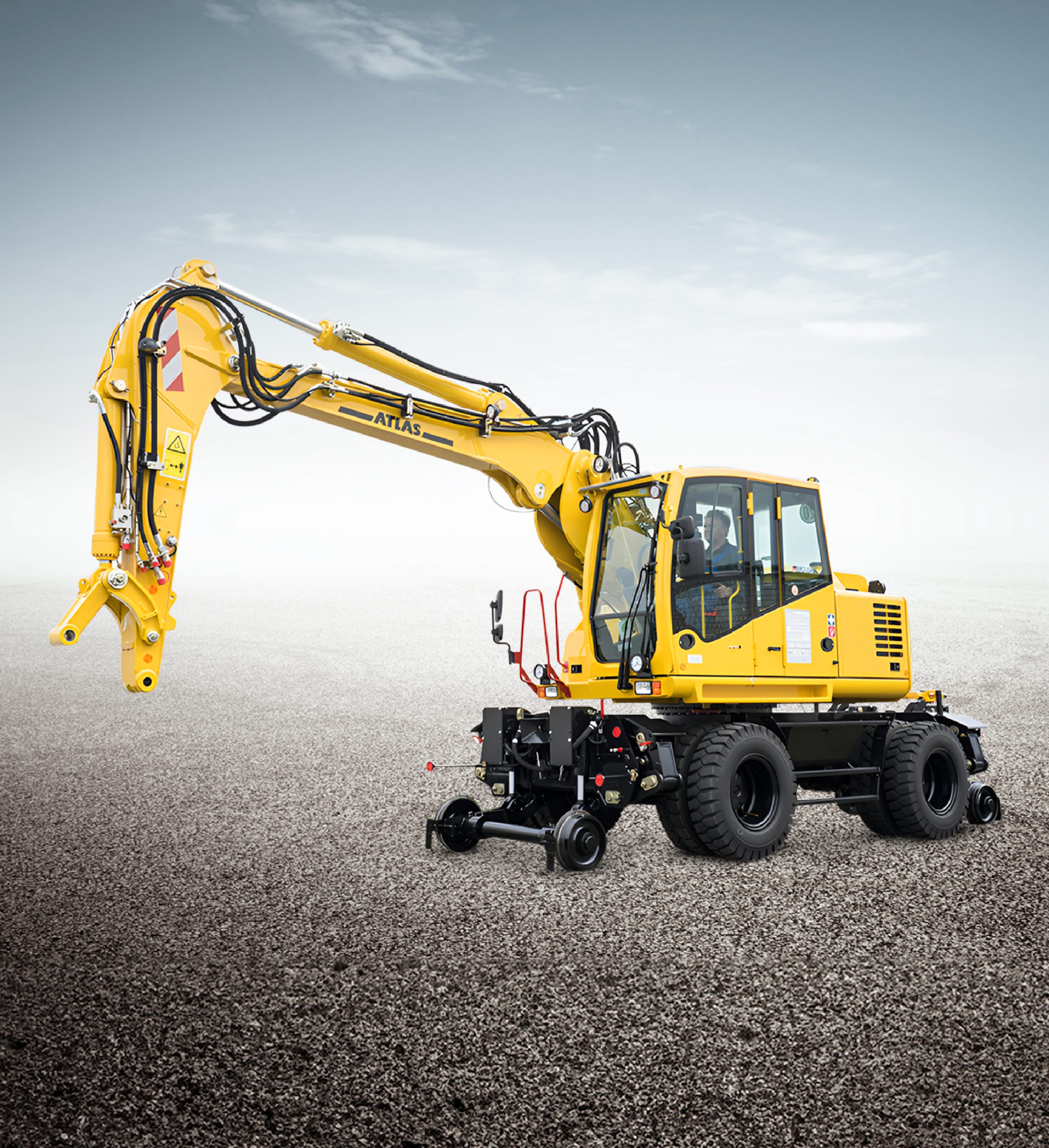 Adding to this legacy of innovation, German Gulf now introduces Atlas Road-Rail Excavators to the UAE market. With over 30 years of engineering evolution, Atlas has redefined road-rail technology with the Carsy system — delivering optimal contact pressure, seamless rail access, and a state-of-the-art cab experience. These machines are purpose-built for demanding railway applications such as track renovations, embankment work, and material handling.